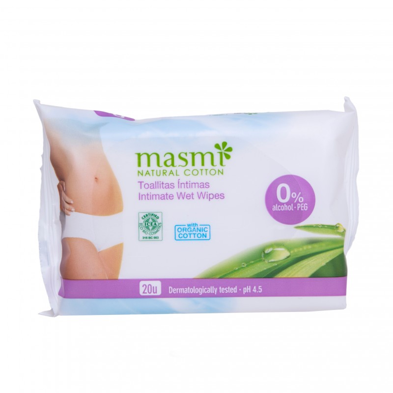 Dámské intimní ubrousky Masmi jsou vyrobené z příjemné biobavlny. Nejsou bělené chlórem, neobsahují žádnou syntetickou parfemaci a jsou hypoalergenní. Riziko podráždění citlivých partií je tedy minimální. Ubrousky můžete využívat každý den, ale nejvíce je oceníte během menstruace, kdy máte zvýšené nároky na hygienu.