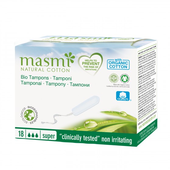 Tampony z organické bavlny Masmi. Konec podráždění a svědění při vašich dnech. Proč dát přednost bavlně? Prostředky dámské hygieny MASMI jsou vyrobeny z 100% organické bavlny, neobsahují škodlivá bělidla, parfémy, plasty ani celulózu, a proto přinášejí řadu výhod: žádné podráždění, konec alergií, ochrana přírody, prodyšnost, stop zápachu. Tampony z organické bavlny - Super Absorpční jádro vyrobené z organické bavlny, bez herbicidů a pesticidů. Hypoalergenní - nižší riziko vzniku podráždění. Absorpční jádro je obaleno speciální bezpečnostní vrstvou z bavlny, která zabraňuje uvolňování vláken do vašeho těla.